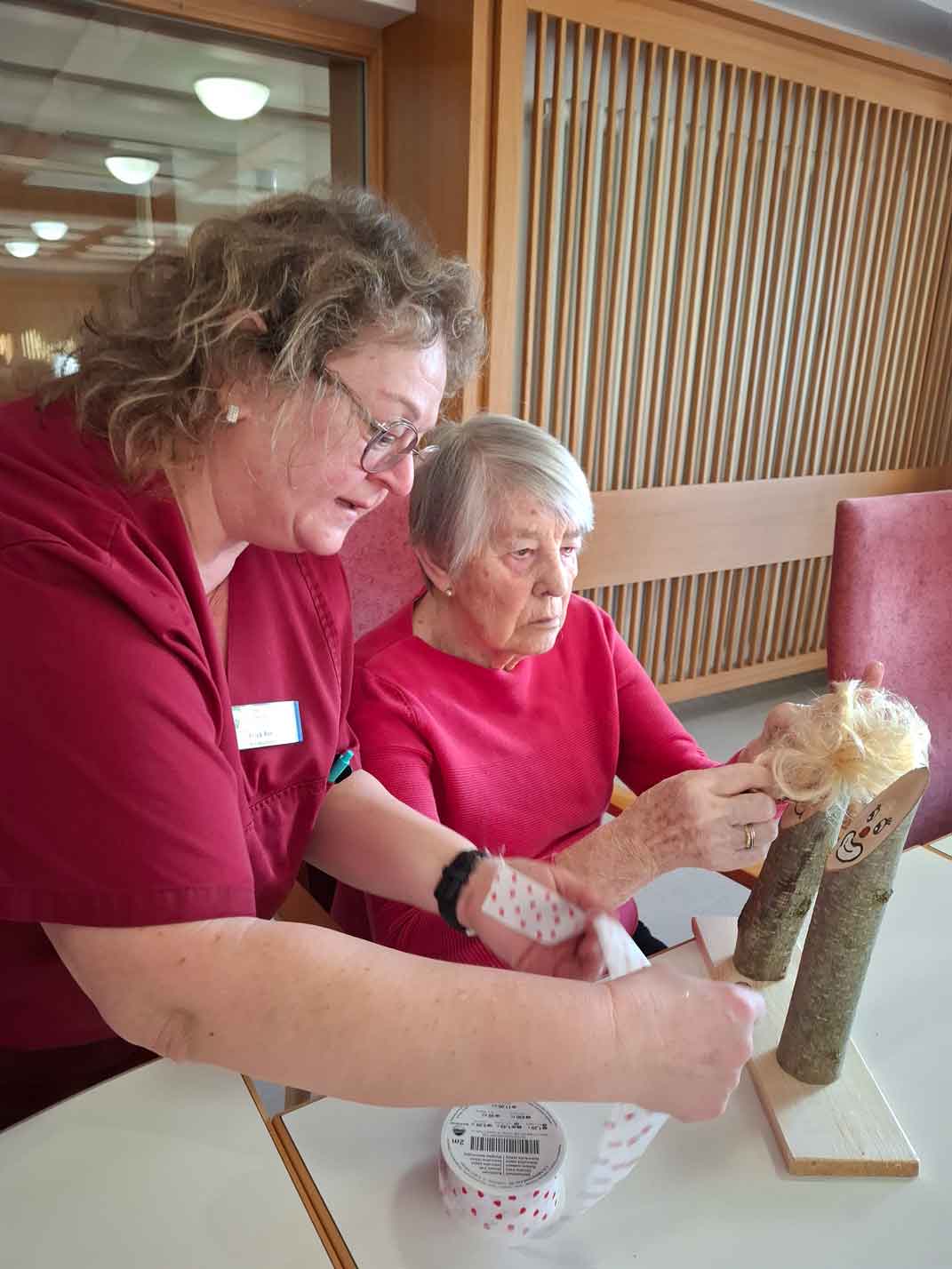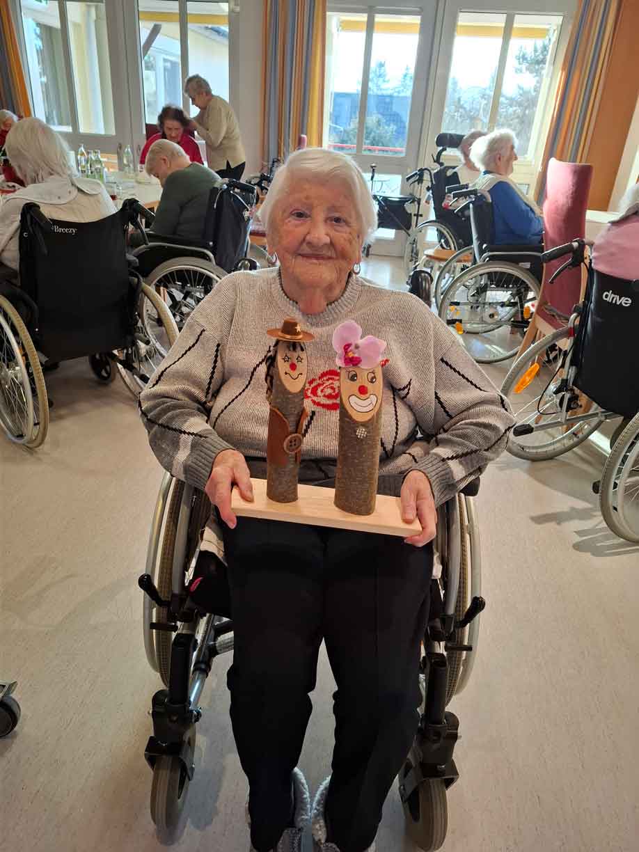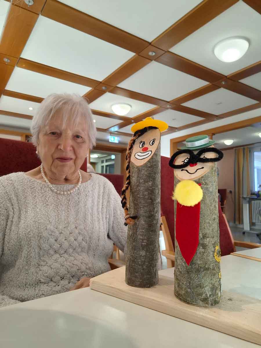 Wie schon öfters praktiziert haben die Abteilungen Hauswirtschaft und Bereuung des Kreis-Seniorenwohnheims St. Andreas sich die internen Schnittstellen der Abteilungen zunutze genommen und haben zusammen die aktuelle Tischdeko für die Faschingszeit gebastelt. So entstanden in enger Zusammenarbeit die Clowns. Die Idee und die Vorarbeiten wurden von den Mitarbeiterinnen der Hauswirtschaft ausgeführt. Das lebendige Aussehen und die lustige Aufmachung wurde den Holzstücken durch die Bereuung, die Bewohner und der HW zuteil.
