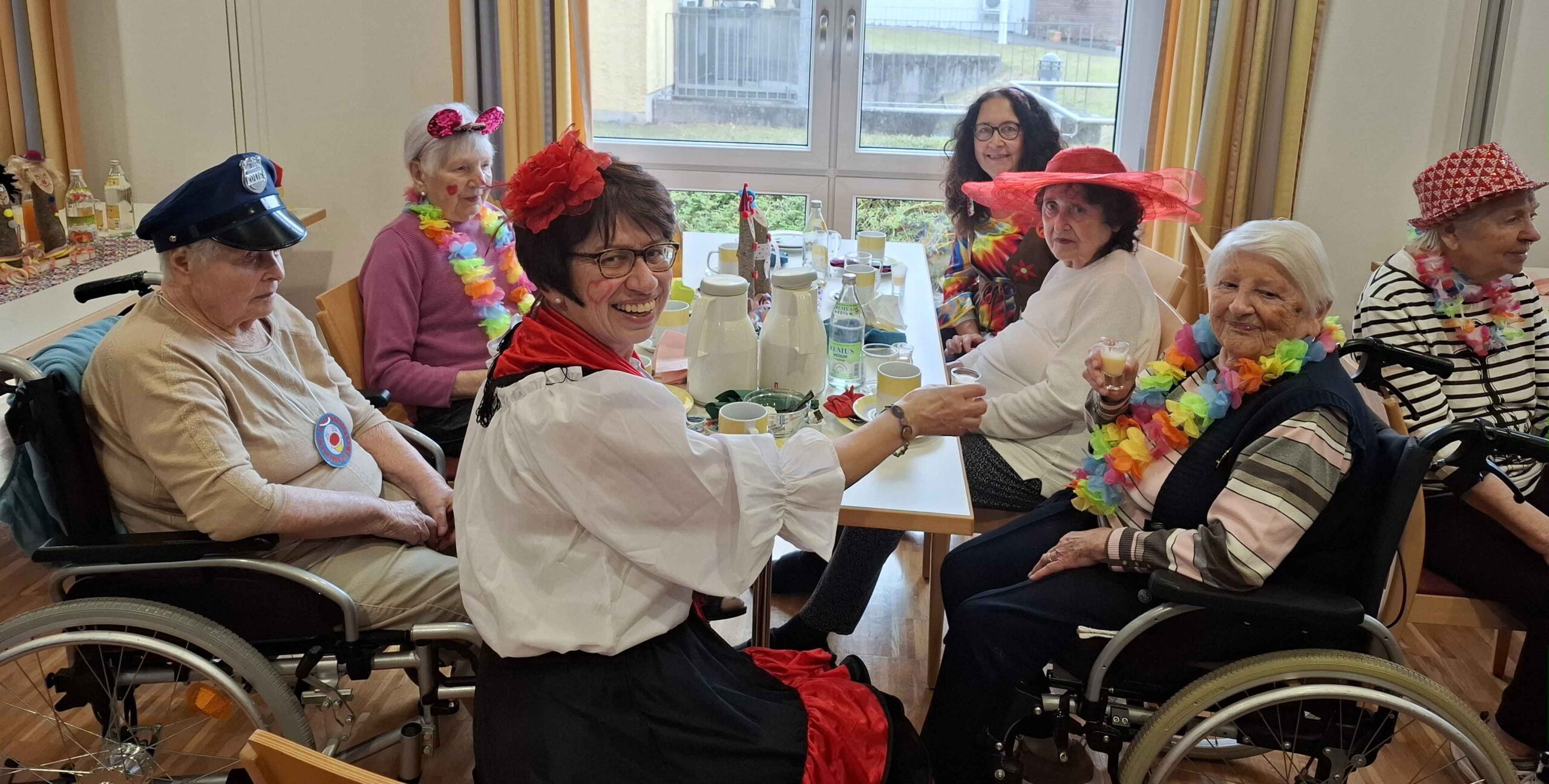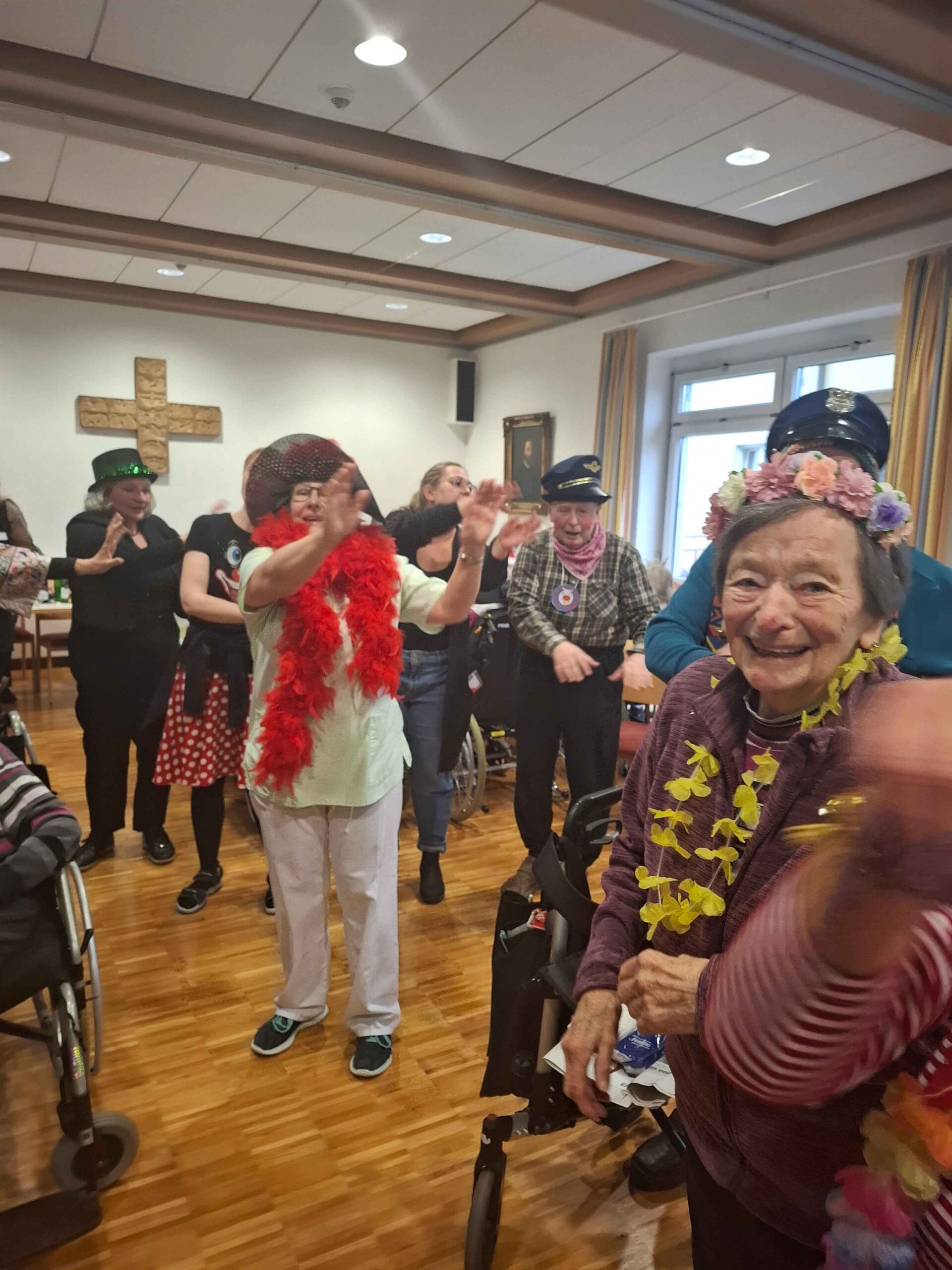 Gut gelaunt ließen die Bewohnerinnen und Bewohner des Kreis-Seniorenwohnheims St. Andreas in Babenhausen den Fasching ausklingen. Am Faschingsdienstag wurde kräftig gefeiert, mit Krapfen, Schmalzgebäck und Eierlikör. Josef Oehl und Edmund Gauder gaben alte Faschingsschlager wie „Rucki Zucki“ zum Besten, aber auch aktuelle Faschingshits wie den Mitmach-Song „Gute Laune“.